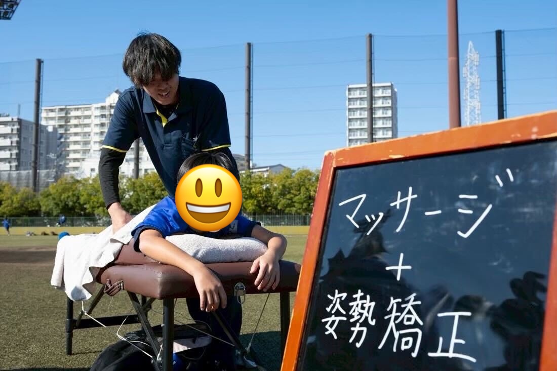 スマトラ接骨院様による保護者様へのマッサージ・姿勢矯正です。日々の育児で力が入りがちな肩の力を抜き、体が軽くなったと笑顔を見せる親御様の姿が印象的でした。練習後、頑張った子どもたちが「あぁー、そこそこ」「効く〜」と大人顔負けのセリフを言っていたのには、笑ってしまいました。